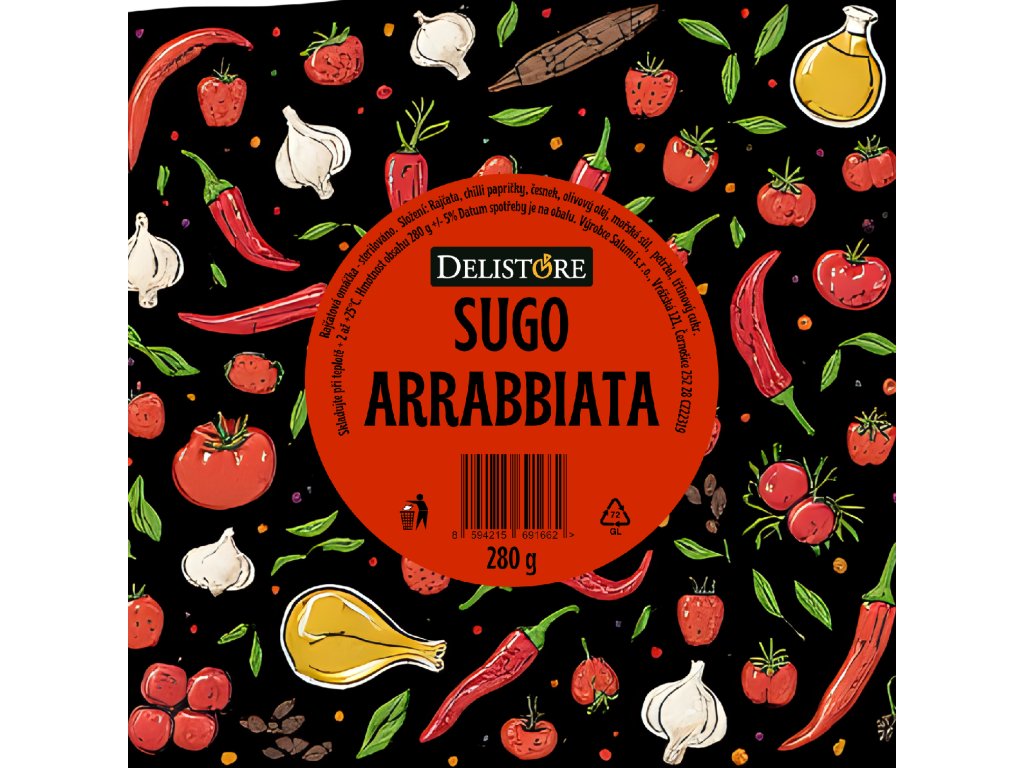 Rajčatová omáčka - sterilováno. Složení: Rajčata San Marzano, chilli papričky, česnek, olivový olej extra panenský, mořská sůl, petržel, třtinový cukr.