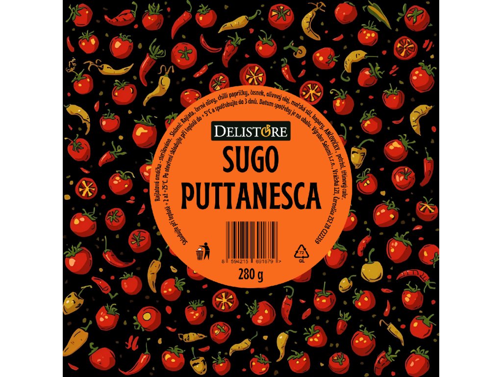 Rajčatová omáčka - sterilováno. Složení: Rajčata, černé olivy, chilli papričky, česnek, olivový olej, mořská sůl, kapary, ANČOVIČKY, petržel, třtinový cukr.